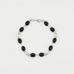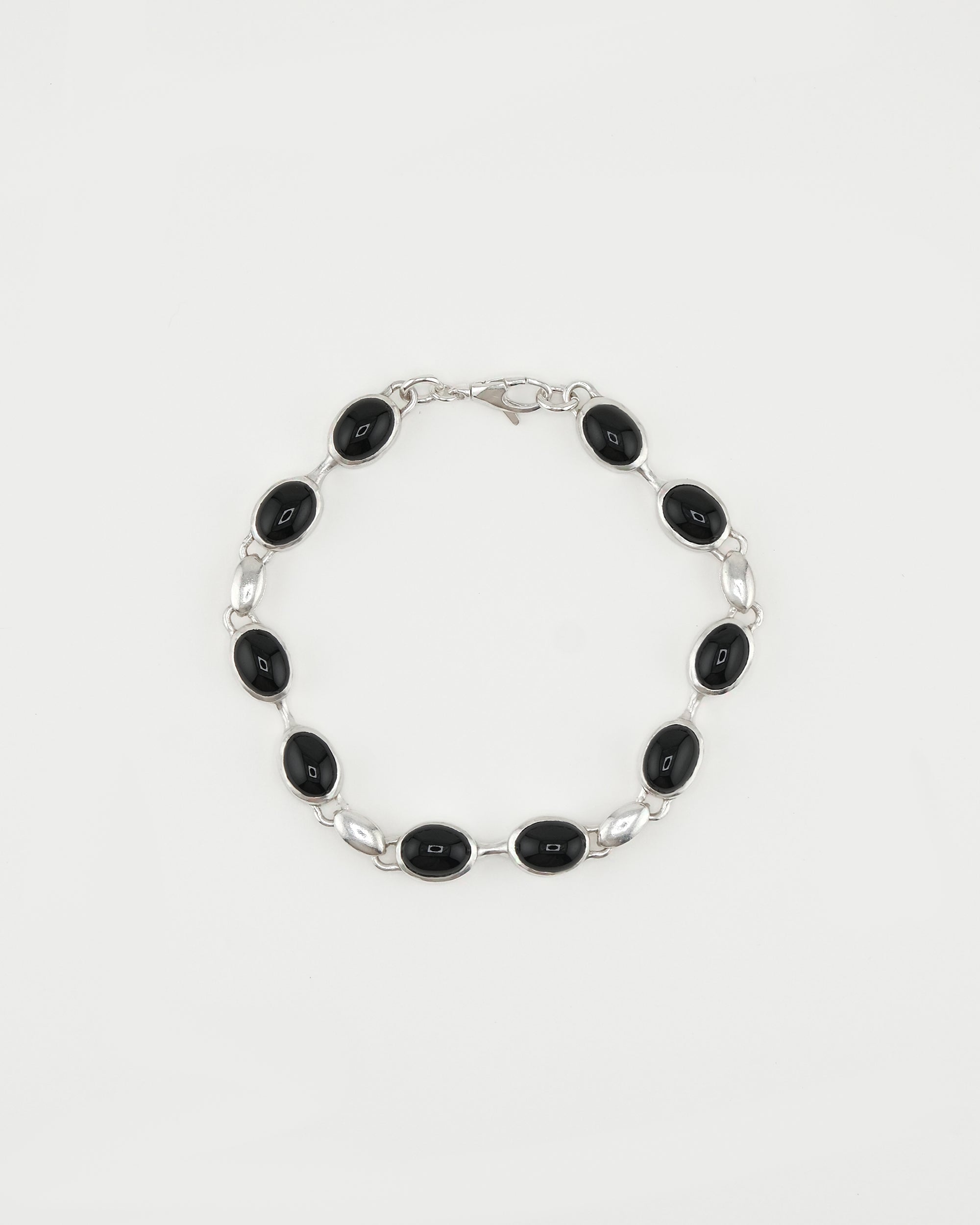 The Celine Bracelet mirrors the design of the Celine Necklace with polished sterling silver bar links, each finished with hand-set 6x8mm cabochon stones. Every link is individually cast and polished, ensuring a handcrafted, refined finish.