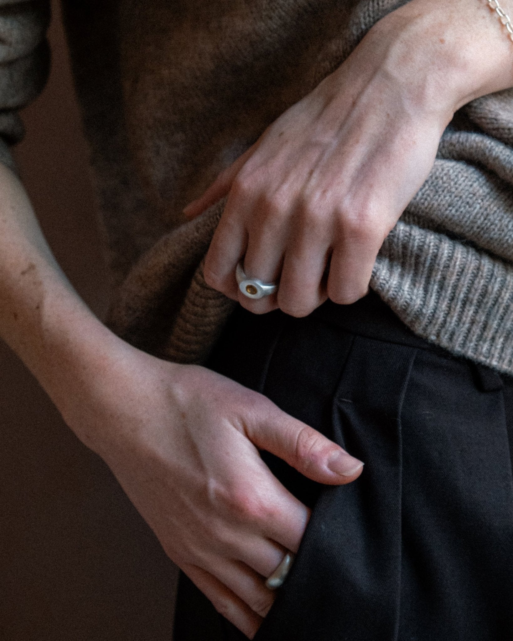 The Glinda Ring features a round, flat face paired with a slim, minimal band for a clean, modern profile. At the center, a 5mm gemstone of your choice is set in a way that appears to float above the surface, creating a subtle sense of depth and lightness.