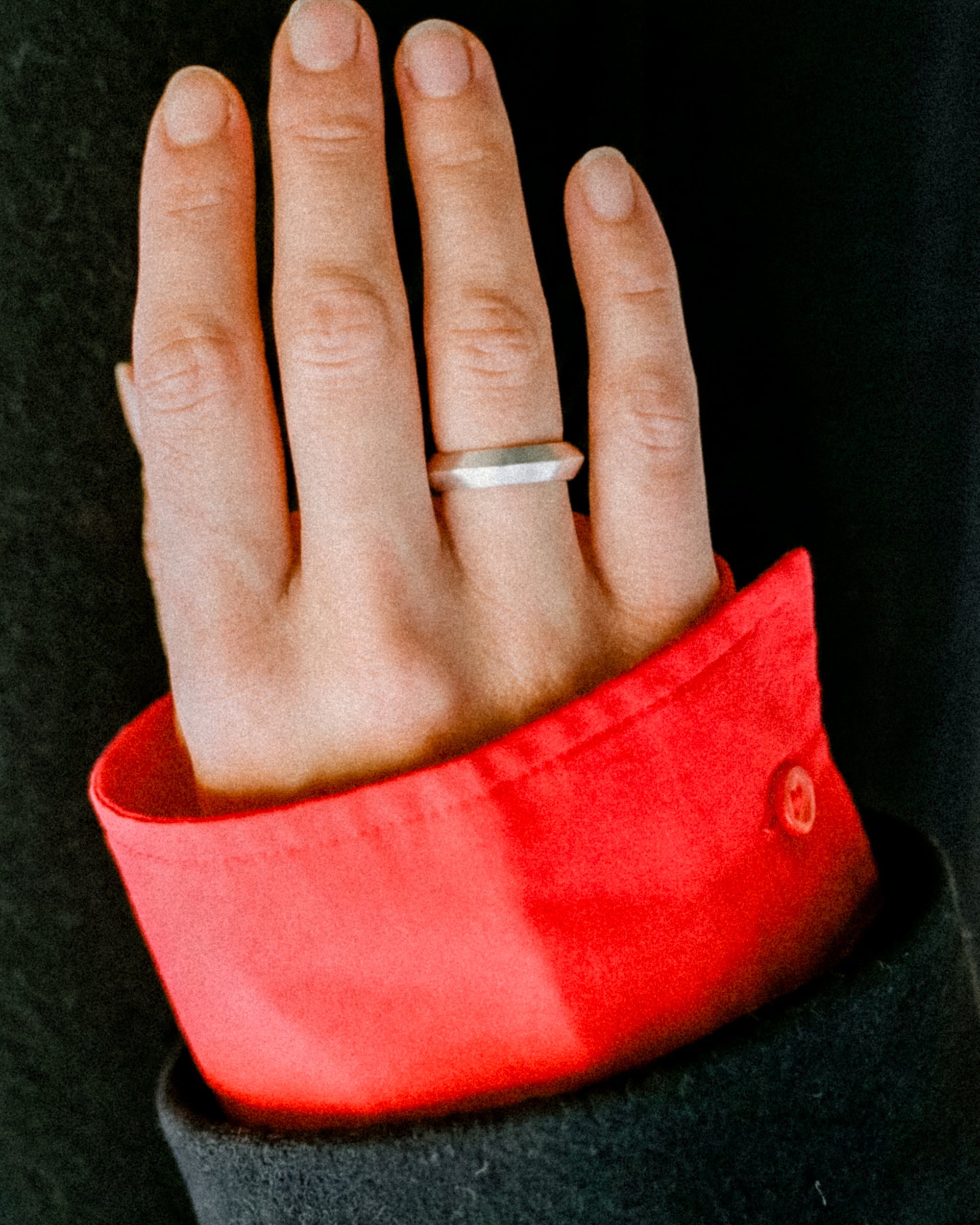 The Saucer Ring is a 4mm disc-shaped ring in polished sterling silver with subtle edge detailing. Its minimalist design makes it perfect for stacking or wearing alone. Hand-finished with care, each ring has its own unique character. Simple, modern, and versatile.